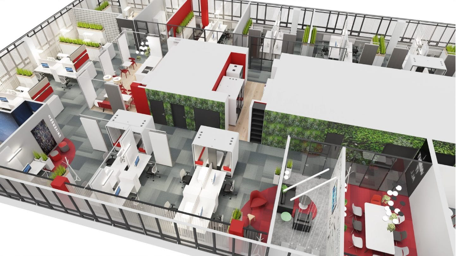 Met behulp van de modernste 3D-planning visualiseren wij uw nieuwe kantoor-, werk-, team- of sociale ruimtes al in de conceptfase. Zo ziet u al in een vroeg stadium hoe de nieuwe ruimtes harmonieus in uw werkomgeving worden geïntegreerd.